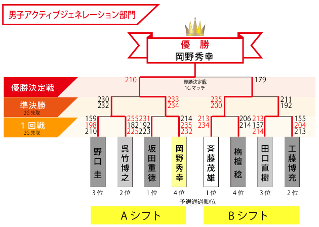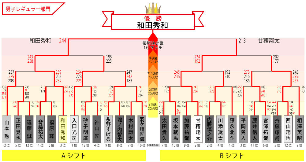 男子レギュラー部門 Aシフト 決勝トーナメント進出者 |