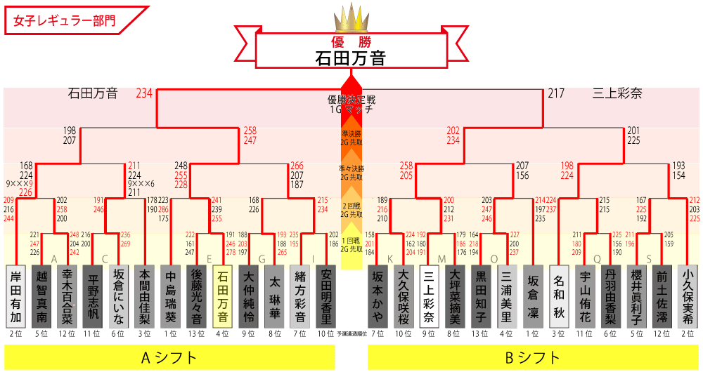 女子レギュラー部門 Aシフト 決勝トーナメント進出者 |
