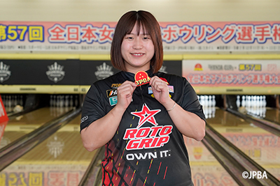 倉田 萌(48期 No.540 サッポロオリンピアボウル)が今季の成績を以て自身の永久A級ライセンス取得が確定しましたので、「『HANDA CUP』・第57回全日本女子プロボウリング選手権大会」にて、金枠ワッペンの授与を行いました。