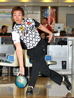 ターキーで滑り出した日置もそこから我慢のボウリングに一転。何とかノーミスでしのぎ、9フレーム目からオールウェーで追いかけてくる田坂を下しました。