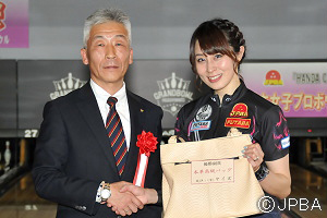 最後はここまでトップを守りきった感動から姫路の目が潤みますが、きちんとストライクで終わりたい、プロボウラーとして凛としてありたいと涙を堪え、9フレーム目からのオールウェーで有終の美を飾りました。 |