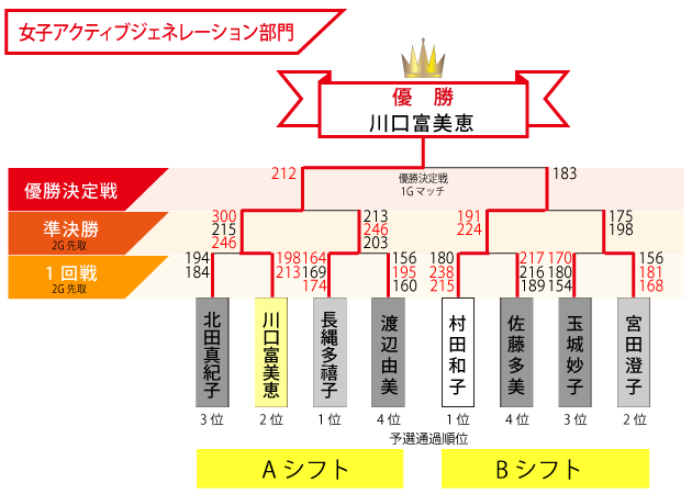 女子レギュラー部門 Aシフト 決勝トーナメント進出者 |